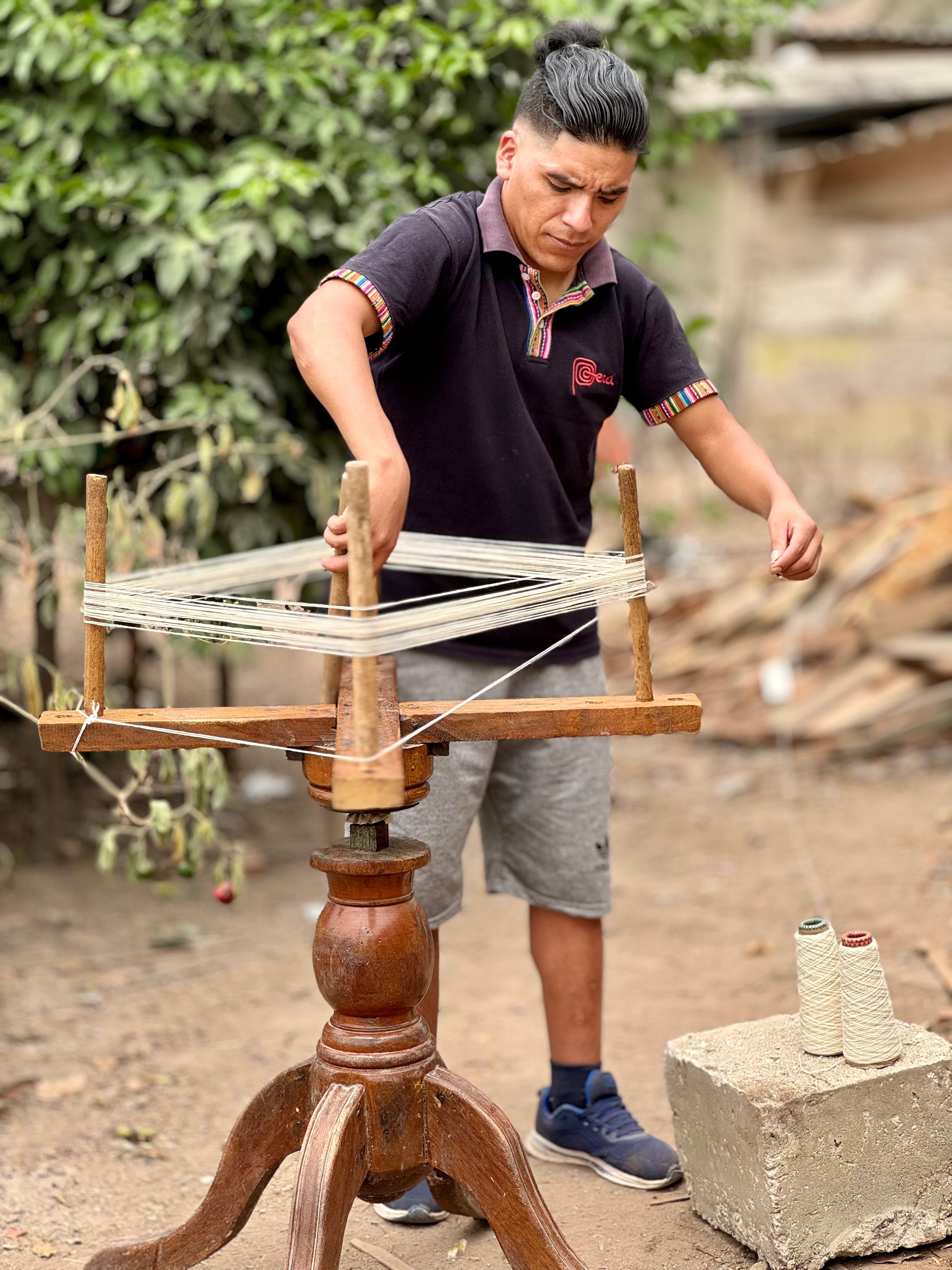 The fleece is carefully selected, washed, and dried. Then, the fibers are hand-spun using a traditional spindle, known as a Pushka in Quechua, preserving ancient spinning techniques passed down through generations.